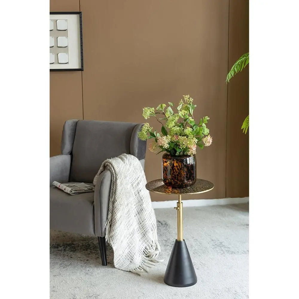 8" Amber And Black Animal Print Glass Round Table Vase - NOBLE HOME INTERIORS