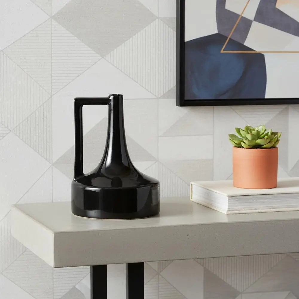 8" Black Ceramic Jug Vase