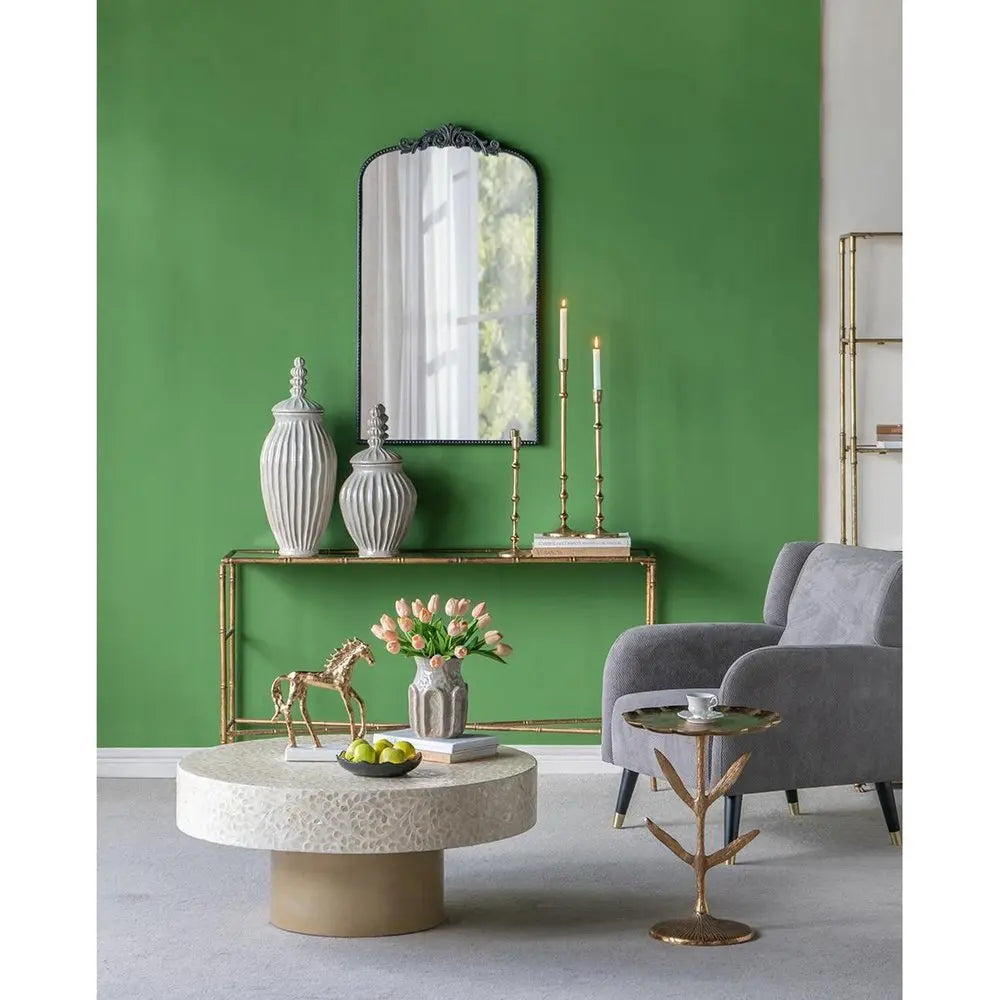 The 8-inch sage and gray textural ceramic table vase is an elegant addition to any home decor. Crafted from high-quality ceramic with a textural geometric arch pattern and a speckled reactive glaze, it offers durability along with a beautiful artisanal aesthetic. Its transitional style makes it versatile, allowing it to blend seamlessly with both modern and traditional interiors. Elevate your home with this beautiful ceramic table vase, designed to blend seamlessly with your existing decor. 8.1-inch h x 5.9-inch w x 5.9-inch d.