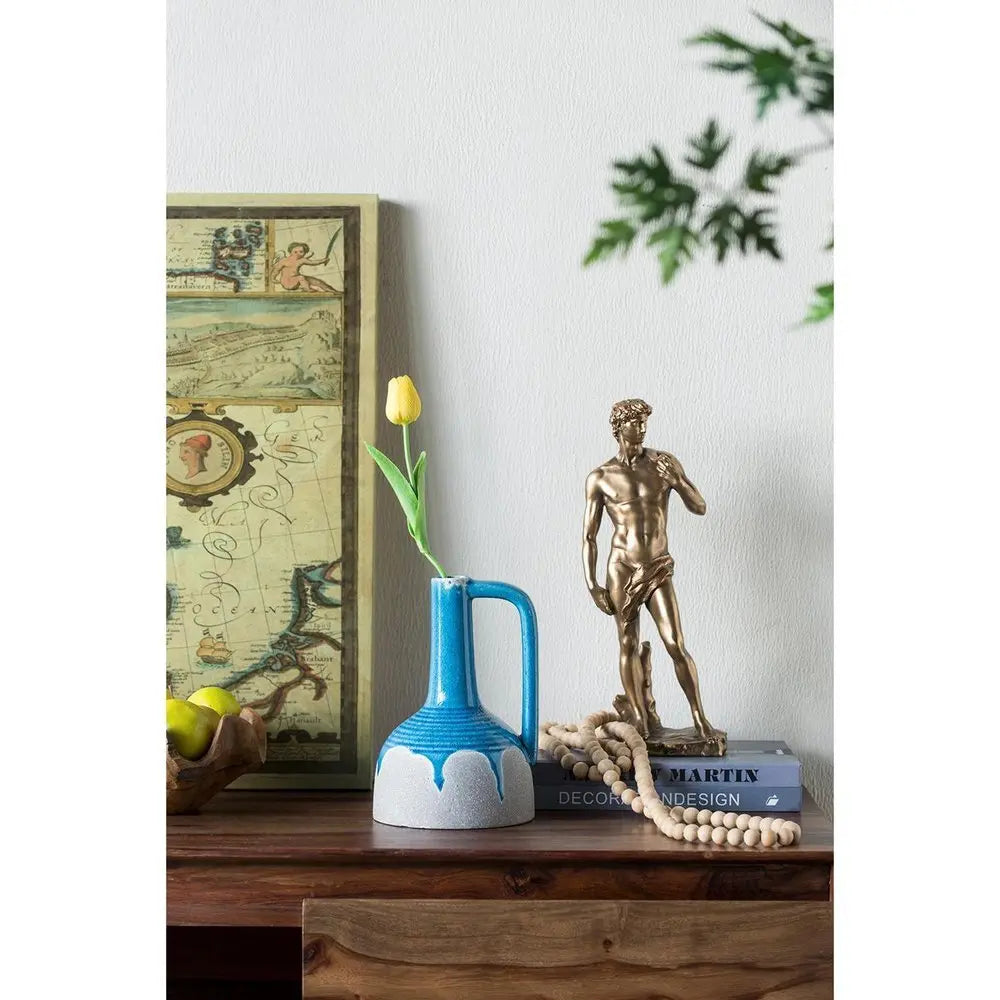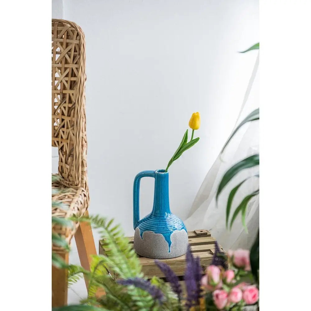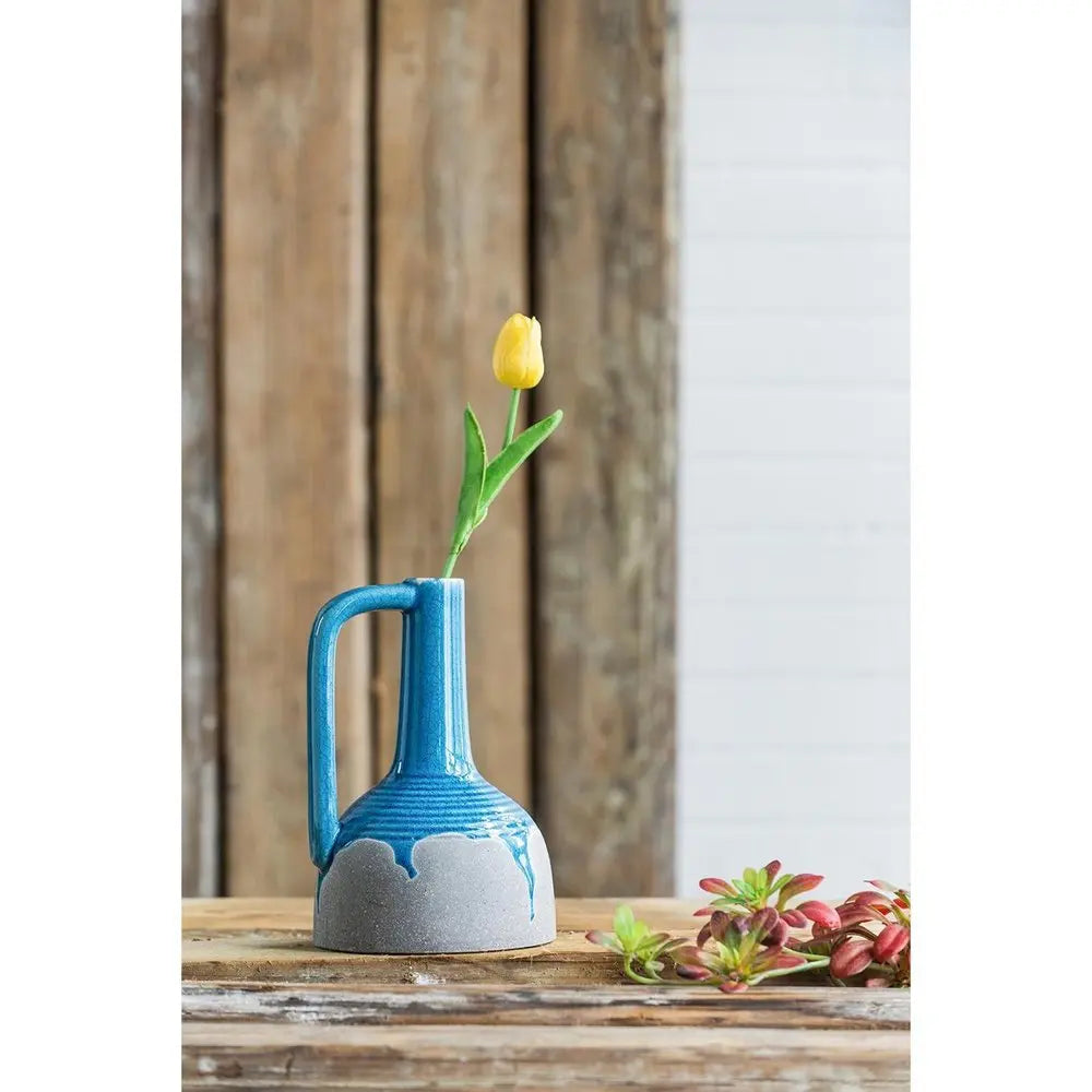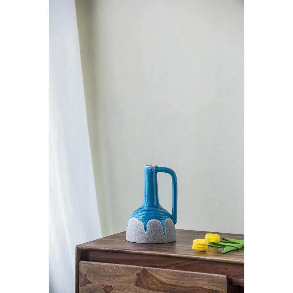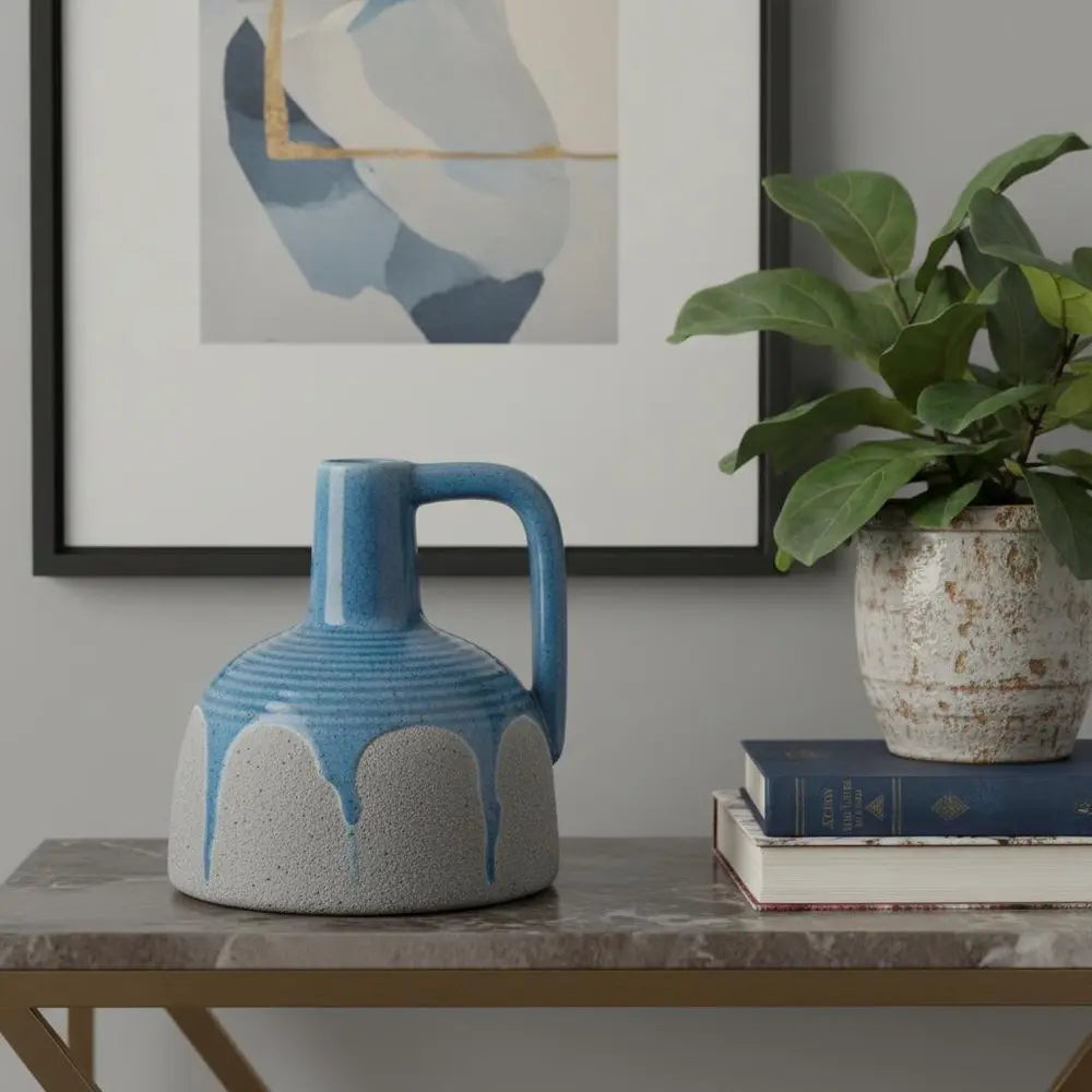 9" Blue and Gray Bud Ceramic Jug Vase With Does Not Apply - NOBLE HOME INTERIORS