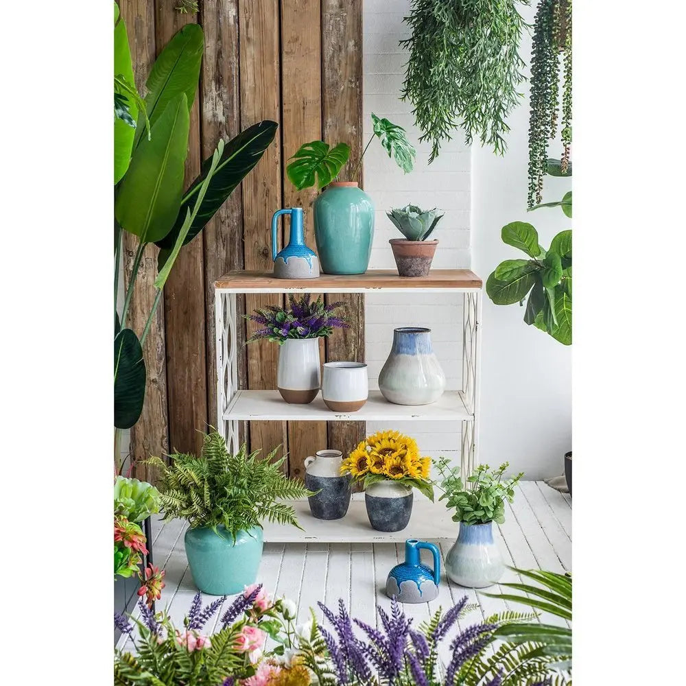 Elevate your floral arrangement with the 9-inch blue and gray bud ceramic vase. Crafted from high-quality ceramic, this jug vase showcases a stylish blend of blue and gray hues. The bud shape adds a touch of elegance, perfect for displaying your favorite blooms. With a unique coat/paint distressing, this transitional-style vase brings a hint of vintage charm to any room. Whether placed on a mantle or as a centerpiece, this vase effortlessly enhances your home decor with its timeless appeal. 9.1-inch h x 5.9-inch w x 5.9-inch d.