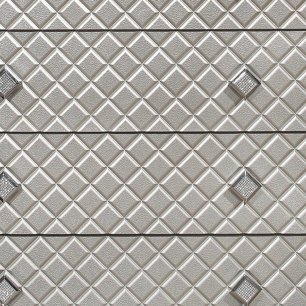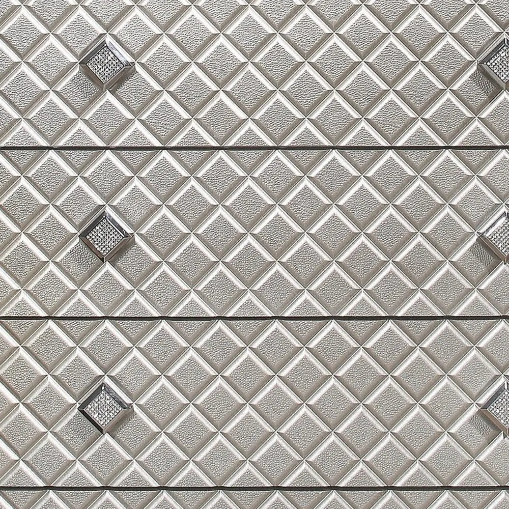 An elegant, eye-catching transitional style chest. This chest highlights the notion that exquisite look and abundant storage options can be united into one graceful yet functional piece. From the gorgeous champagne toned top and base, to the lovely mirror accents, this chest will add elegant notes to your room setting without sacrificing function. Drawer fronts feature jeweled embellished drawer knobs in a striking diamond motif that together create a beautiful, graceful look. Tapered acrylic legs and tasteful design accents add additional graceful appeal to this piece. Ample drawer space makes this piece supremely practical and an efficient way to keep your room neat and tidy. Quality craftsmanship in every facet of production, ensures durability and long-lasting wear. This chest is the perfect way to make your bedroom comfortable and inviting, and the storage space makes this nightstand an absolute winner in versatile and stylish room furnishings.