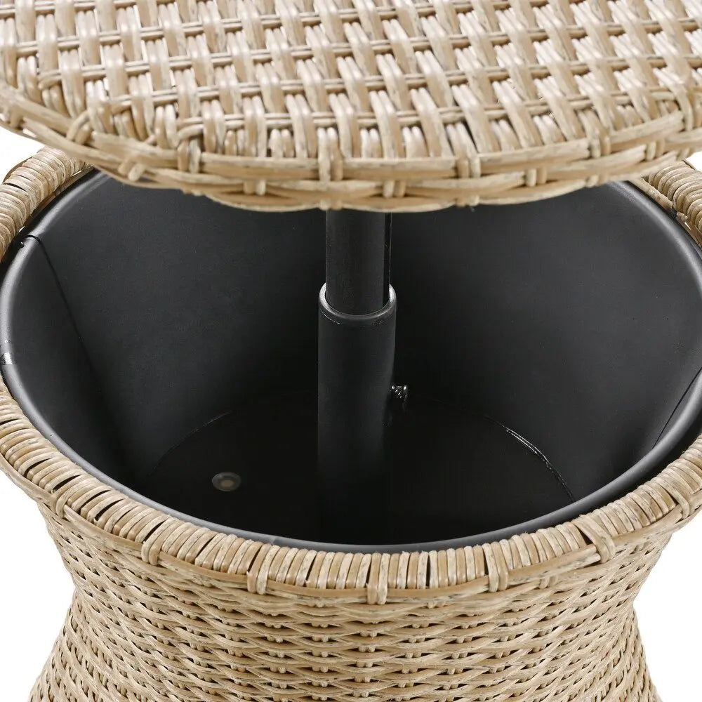 Five Piece Light Gray and Tan Wicker Upholstered Cushions Two Person Seating Group With Table