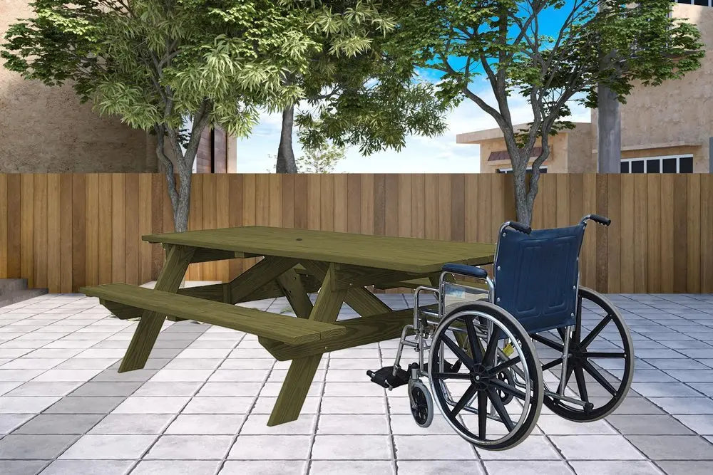 Green Solid Wood Outdoor Picnic Table Umbrella Hole