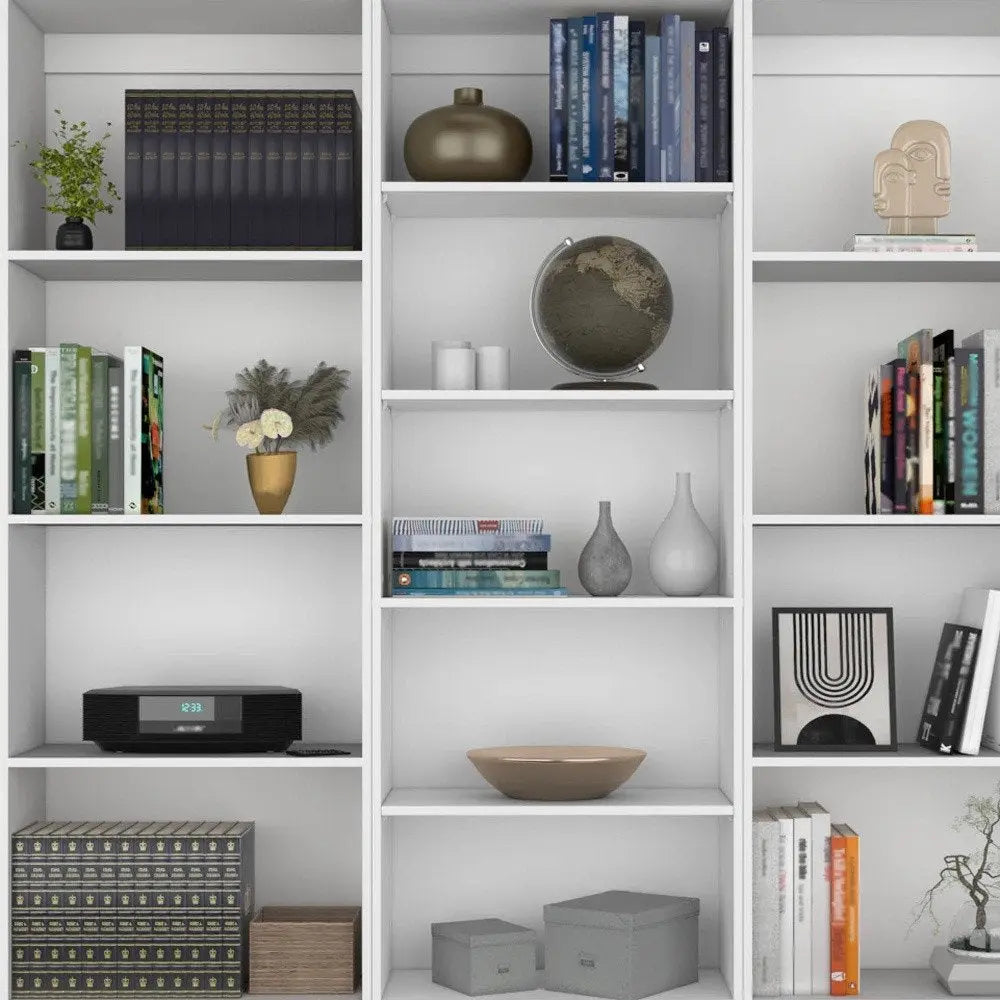 Set of Three White Wood Thirteen Tier Modular Bookcase