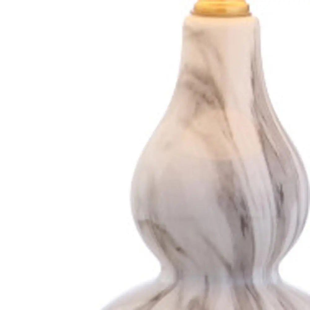 This set of two 21-inch gold gourd desk lamps led with drum shades is the perfect combination of design and function. The base of this lamp is made of gold iron. The white drum linen shade is finishes this piece off nicely and symmetrically this desk lamp provides 'task lighting' that will illuminate your working area for reading or writing. The light that this lamp throws is soft and warm to elevate the look of most any space in your home. The perfect lamp to create just the right natural and soothing light in your space. 20.50-inch h x 10.00-inch w x 10.00-inch d.