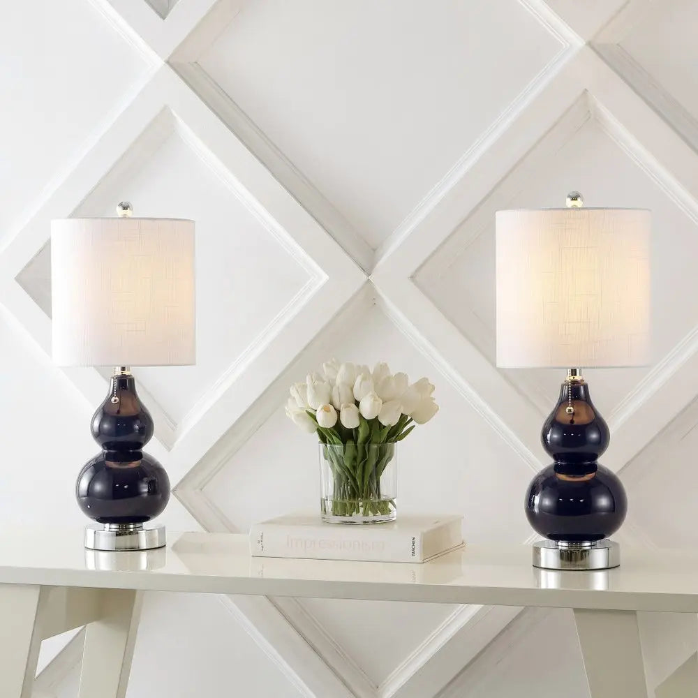 Truly a mix of design and functionality that doesn't compromise on style, this set of two 22-inch silver gourd table lamps led with drum shades will be a great addition to your space. The base of this lamp is made of silver iron. The white drum linen shade is finishes this piece off nicely and symmetrically this standard table lamp is designed to provide general lighting to the area. Use this lamp anywhere and elevate the look of the whole space. The perfect lamp to create just the right natural and soothing light in your space. 22.00-inch h x 9.00-inch w x 9.00-inch d.