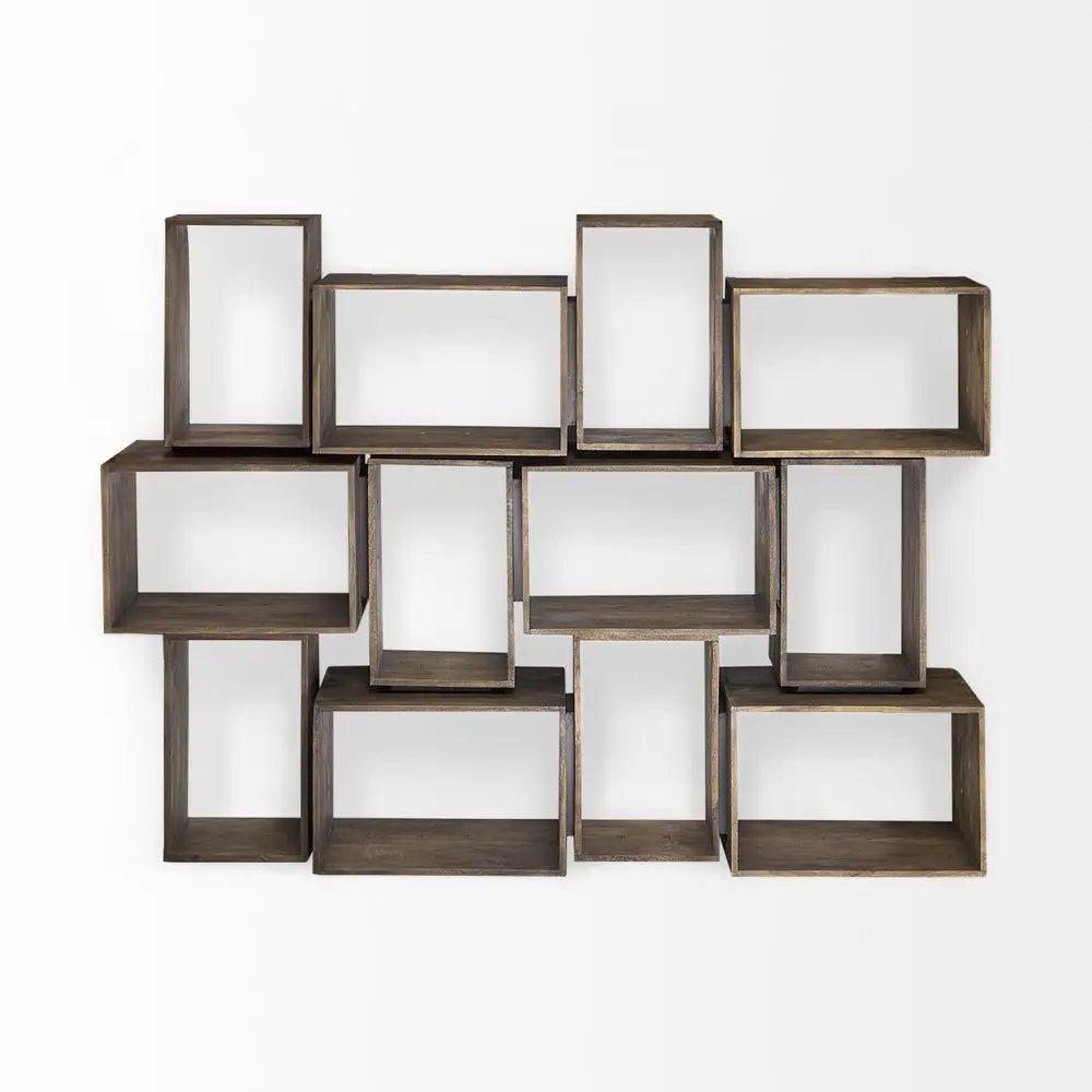 Set of Two Brown Solid and Manufactured Wood Two Tier Floating Bookcase - NOBLE HOME INTERIORS