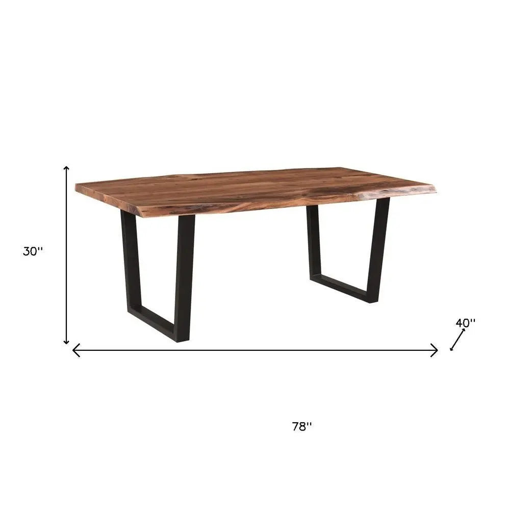 Seven Piece Brown and Black Solid Wood Dining Set with Six Chairs